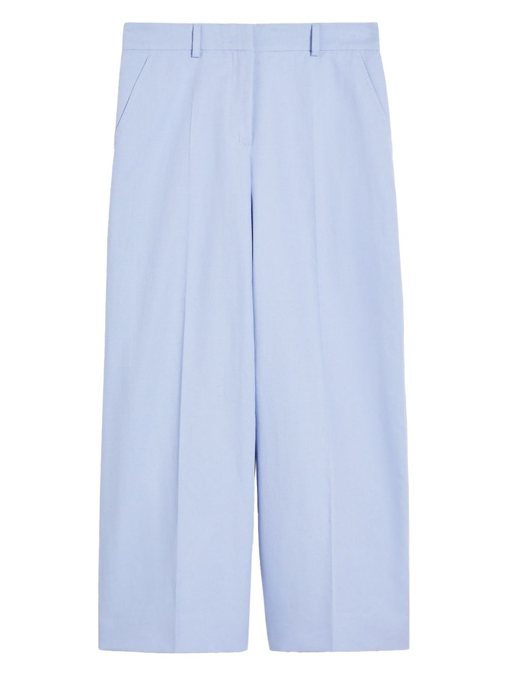 cropped tailored trousers Highlights - Blue - Cropped - Pressed crease - Belt loops Imported Composition Cotton 74%, Linen/Flax 26%