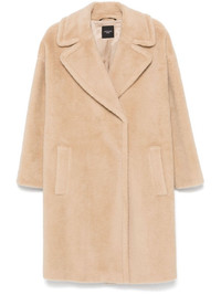 Emmy coat Highlights - Sand beige - Virgin wool blend - Fleece texture - Double-breasted press-stud fastening - Wide notch lapels - Drop shoulder - Long sleeves - Detachable and adjustable waist belt - Two side welt pockets - Full lining - Straight hem - Knee-length Made in Italy Composition Lining: Acetate 50%, Viscose 50% Outer: Virgin Wool 52%, Polyester 26%, Polyamide 22% SIZE & FIT Model measurements Height 5 ft 10 in(1.78 m) Bust/Chest 33.07 in(84 cm) Hips 36.61 in(93 cm) Waist 24.8 in(63 cm) FittingInformation Designed to be unstructured, offering a loose fit throughout The tie fastening gives an adaptable and personalised fit Made from a midweight non-stretch fabric Washing instructions Dry Clean Only