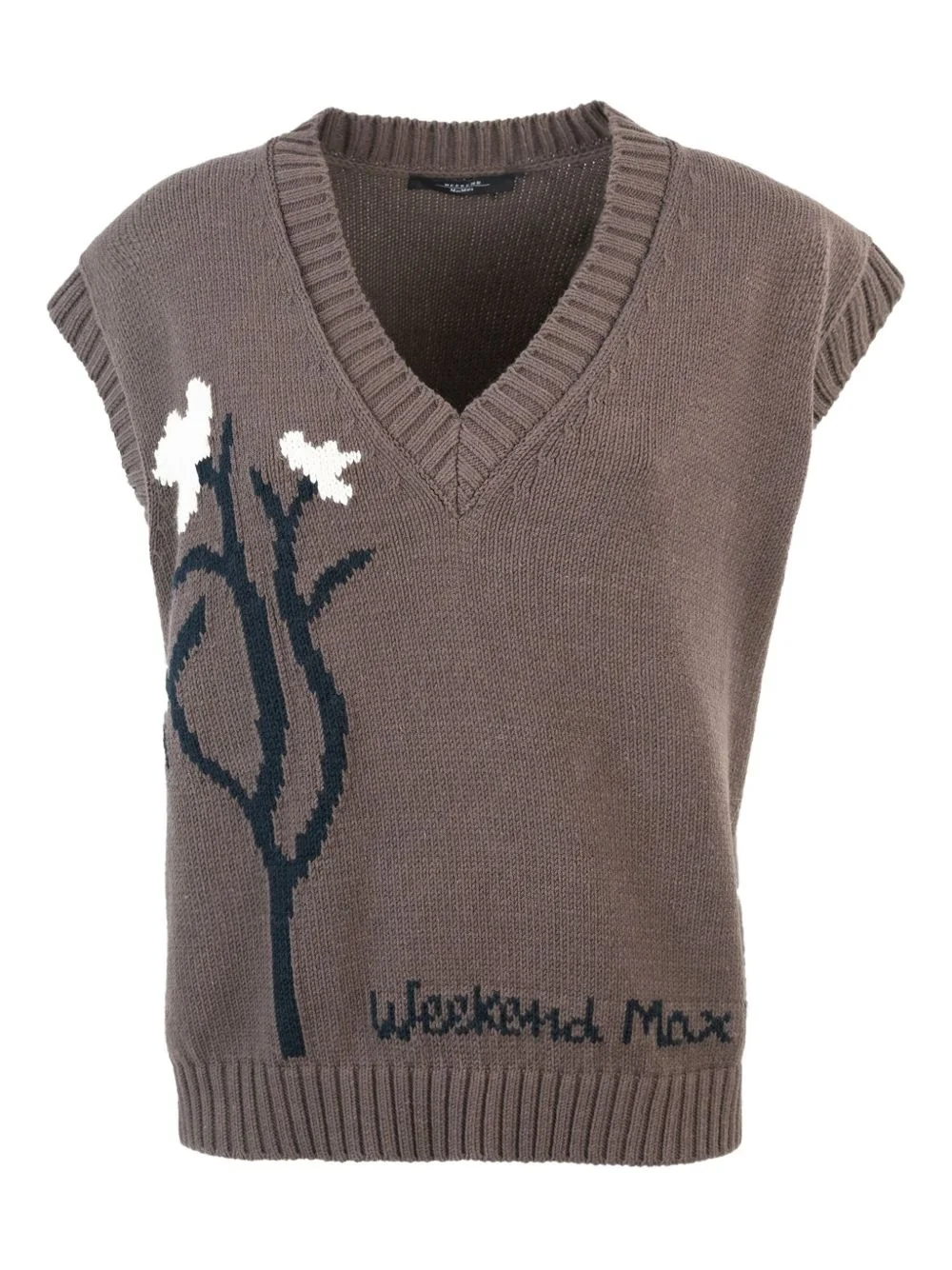 floral-embroidered V-neck sweater Highlights - Brown - V-neck - Sleeveless - Floral embroidery Imported Composition Cotton 60%, Acrylic 40% Washing instructions Read Manufacturer Guidelines