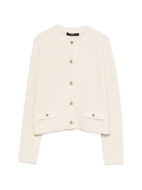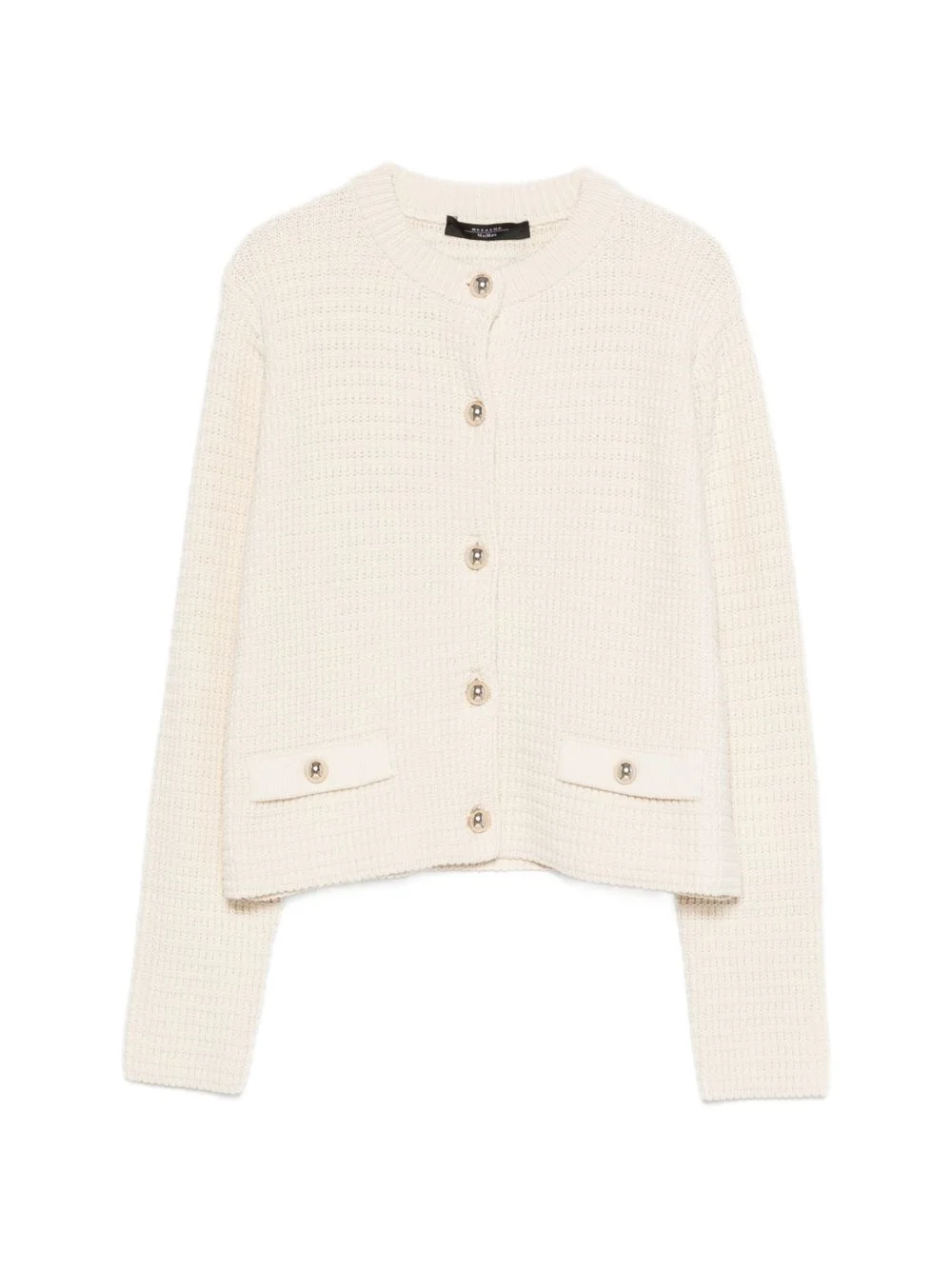 front-pocket buttoned cardigan Highlights - Ivory - Textured knit - Front button fastening - Two front patch pockets - Crew neck - Long sleeves Imported Composition Cotton 91%, Polyester 9% Washing instructions Hand Wash