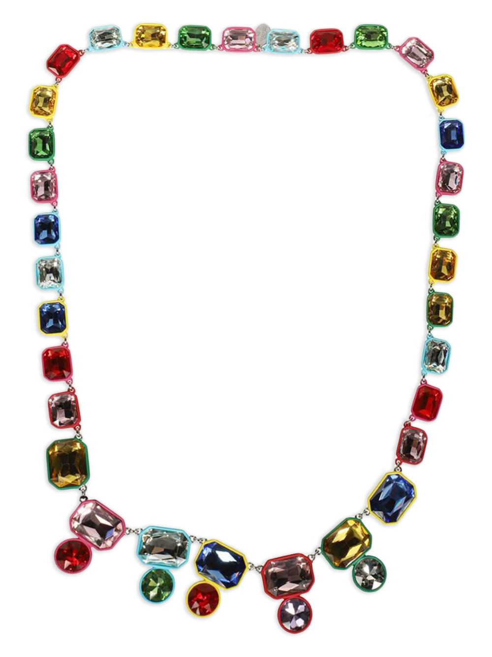gemstone rectangle necklace Highlights - Silver - Rectangular and circular-shaped gemstones - Multicoloured gemstone embellishment Imported