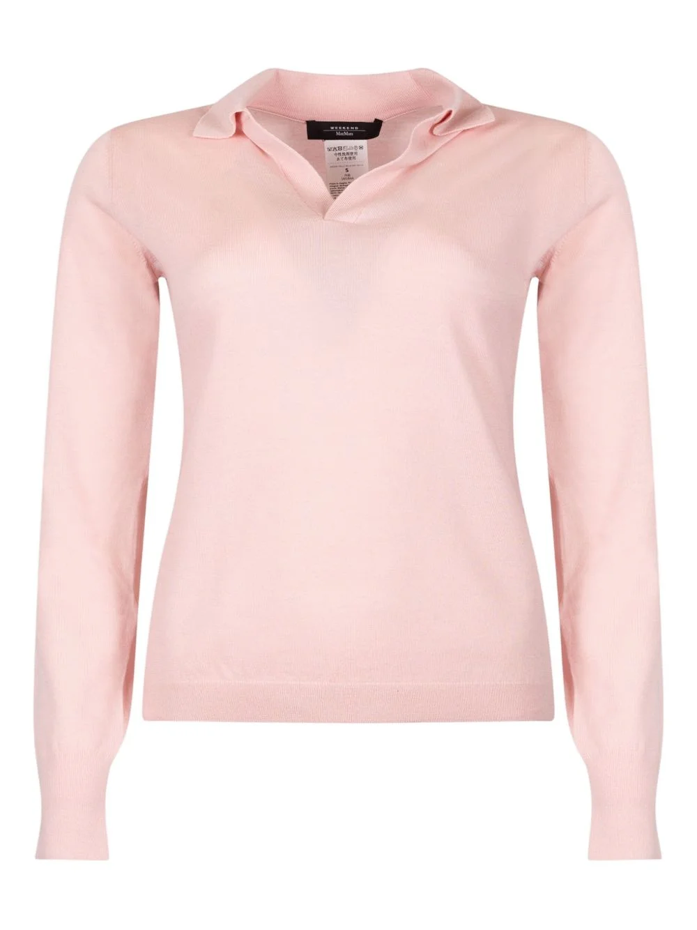 long-sleeve polo sweater Highlights - Light pink - Ribbed edges - V-neck - Long sleeves - Knitted Imported Composition Virgin Wool 90%, Cashmere 10% Washing instructions Read Manufacturer Guidelines