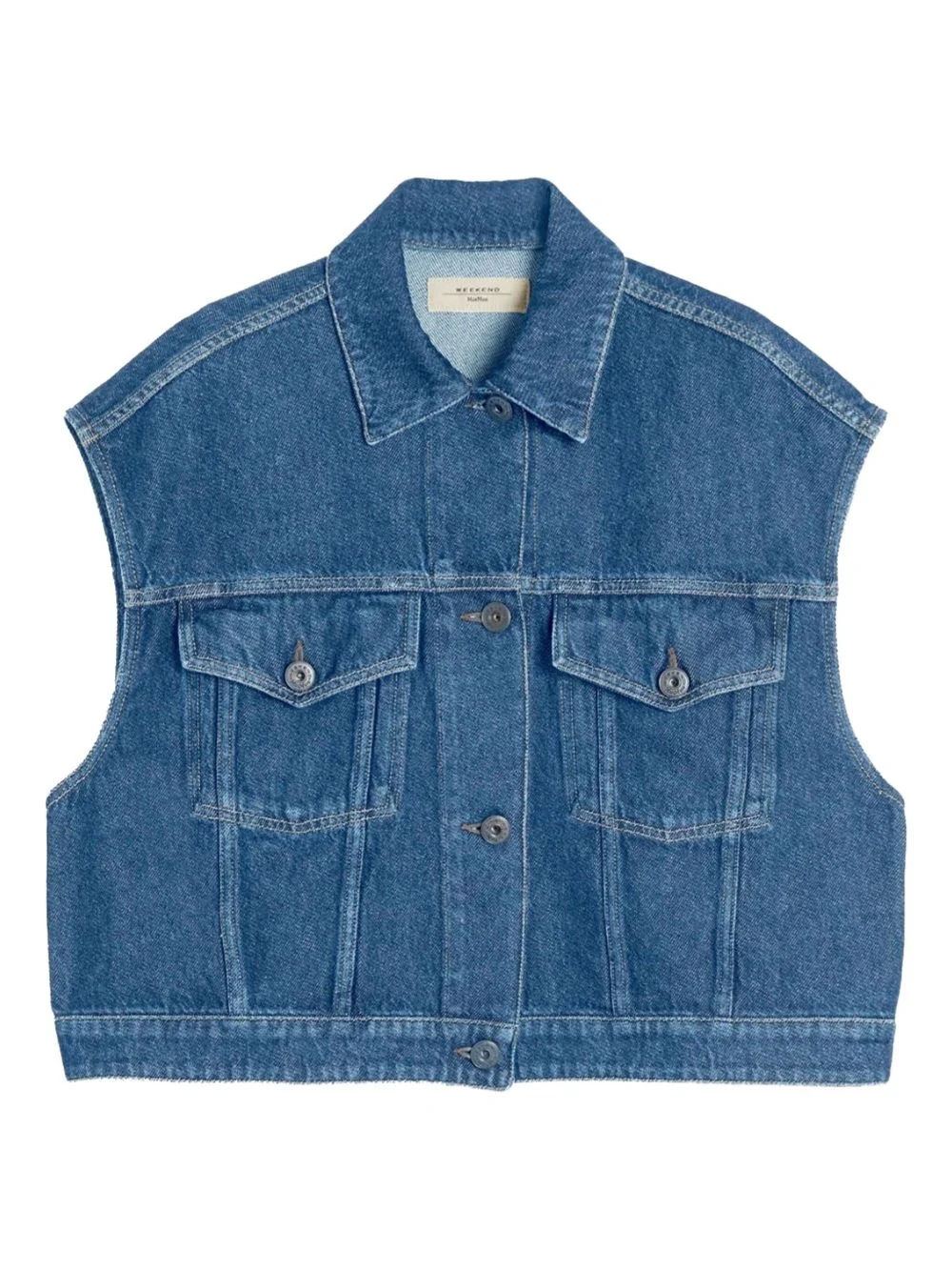 Mappa denim buttoned gilet Highlights - Blue - Cotton denim - Shirt collar - Button fastening - Flap pockets - Adjustable tabs Imported Composition Cotton 100% Washing instructions Read Manufacturer Guidelines