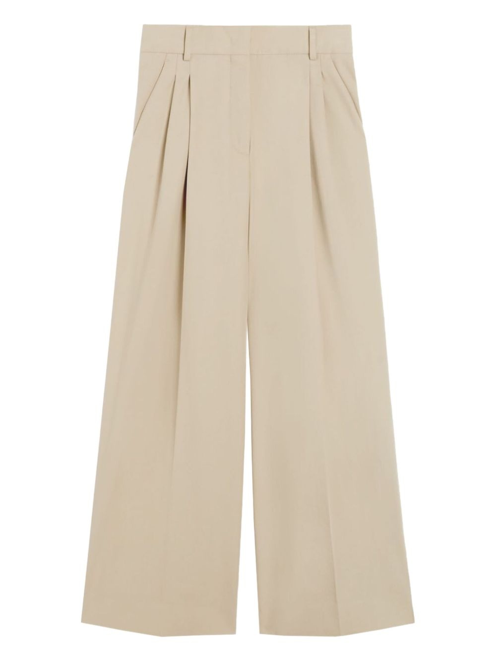 pleated wide-leg trousers Highlights - Beige - Double pleats - Pressed crease - High waist - Button fastening - Cropped leg Imported Composition Cotton 100% Washing instructions Read Manufacturer Guidelines