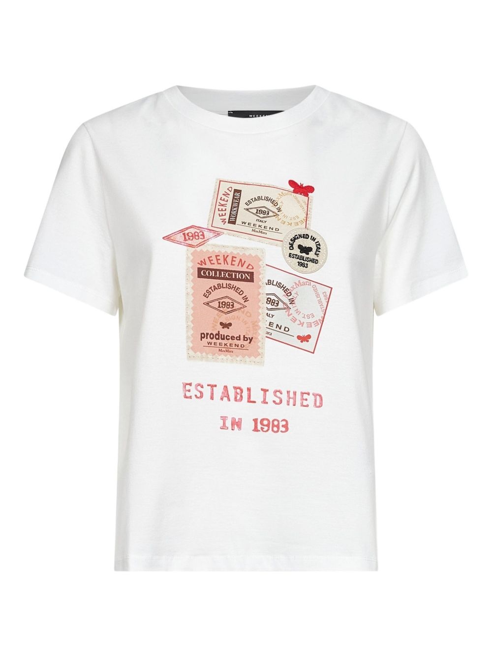 postage-print cotton T-shirt Highlights - White - Crewneck - Short sleeves - Postage print Imported Composition Cotton 100% Washing instructions Read Manufacturer Guidelines
