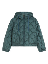 quilted hooded jacket Highlights - Green - Diamond quilting - Hooded neckline - Zip front fastening - Long sleeves - Elasticated cuffs Made in Italy Composition Polyester 100% Washing instructions Read Manufacturer Guidelines