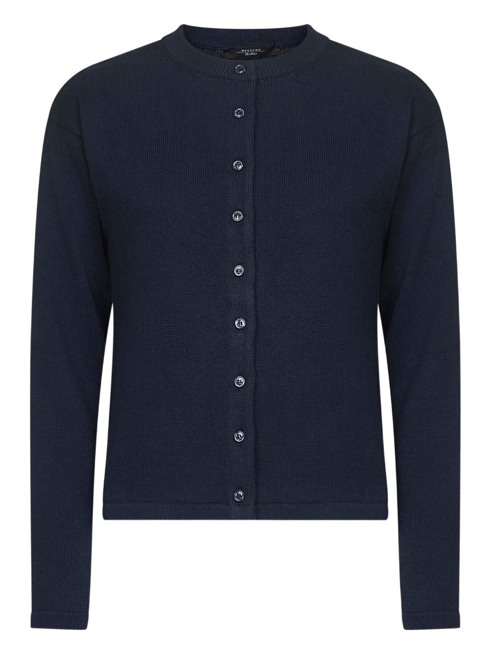 ribbed button cardigan Highlights - Navy blue - Ribbed crew neck - Long sleeves - Dropped shoulders - Ribbed cuffs - Button placket Imported Composition Cotton 100% Washing instructions Read Manufacturer Guidelines