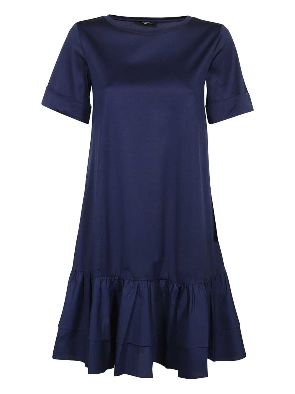ruffled cotton mini dress Highlights - Navy blue - Cotton - Short sleeves - Round neck - Tiered ruffle hem - Turn-up cuffs Imported Composition Cotton 100% Washing instructions Read Manufacturer Guidelines