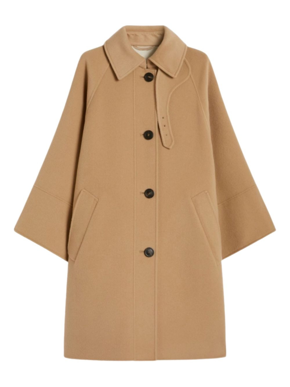 RUFO single-breasted wool coat Highlights - Camel - Button fastening - Wide sleeves - Patch pockets - Belted waist Imported Composition Polyester 100%, Virgin Wool 100% Washing instructions Read Manufacturer Guidelines