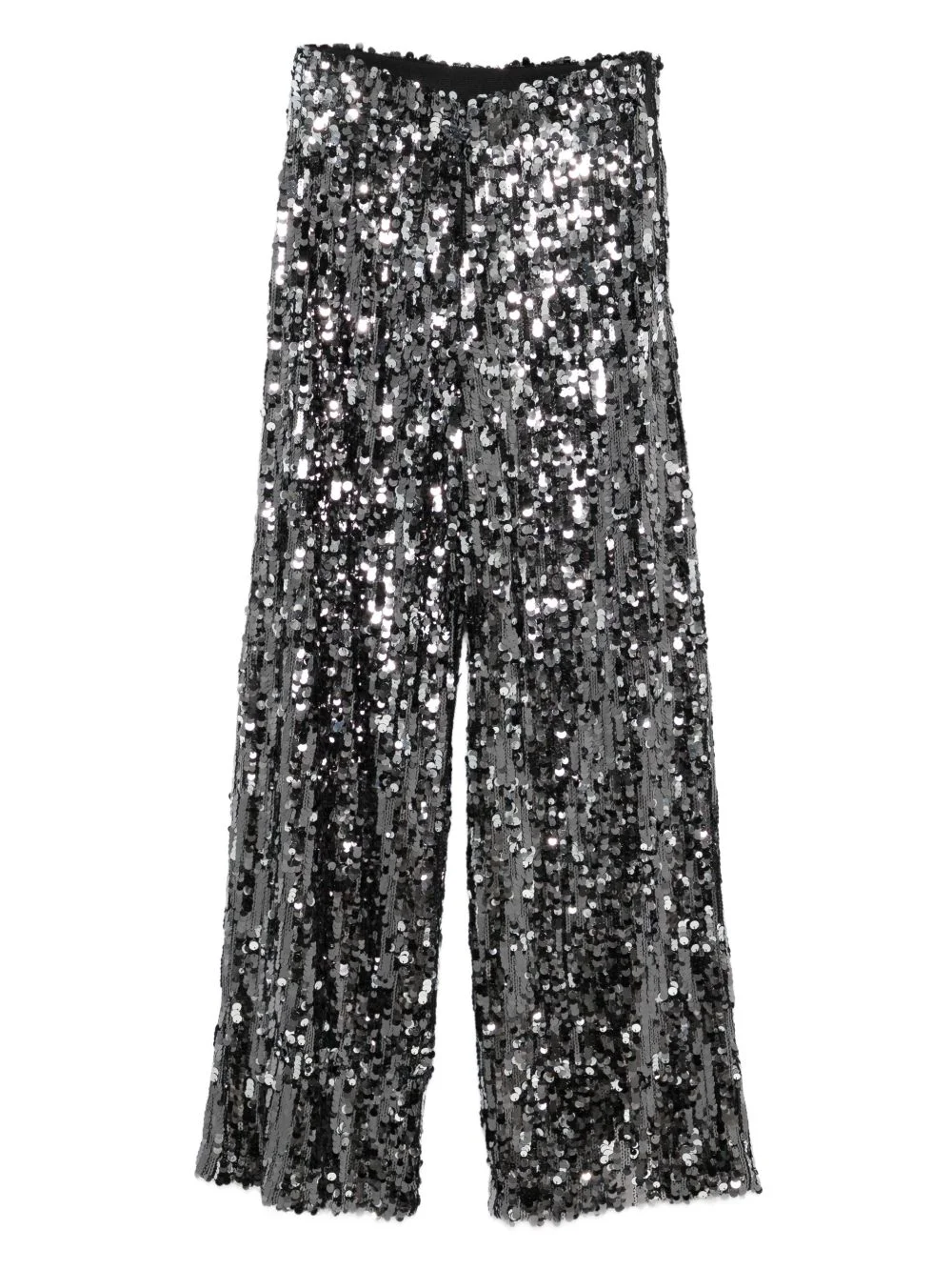 sequin-embellished trousers Highlights - Black - Sequin embellishment - Elasticated waistband Imported Composition Outer: Polyester 95%, Elastane 5% Lining: Polyester 100% SIZE & FIT Model measurements Height 5 ft 10 in(1.78 m) Bust/Chest 31.49 in(80 cm) Hips 37 in(94 cm) Waist 23.62 in(60 cm) Washing instructions Hand Wash
