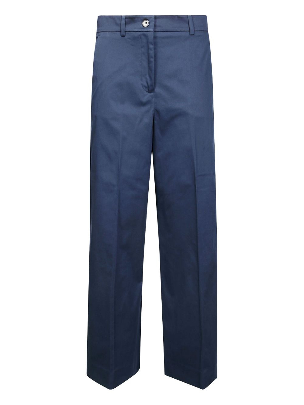 straight-leg trousers Highlights - Blue - Cotton - Front button and zip fastening - Belt loops - Rear welt pockets Imported Composition Cotton 100% Washing instructions Read Manufacturer Guidelines