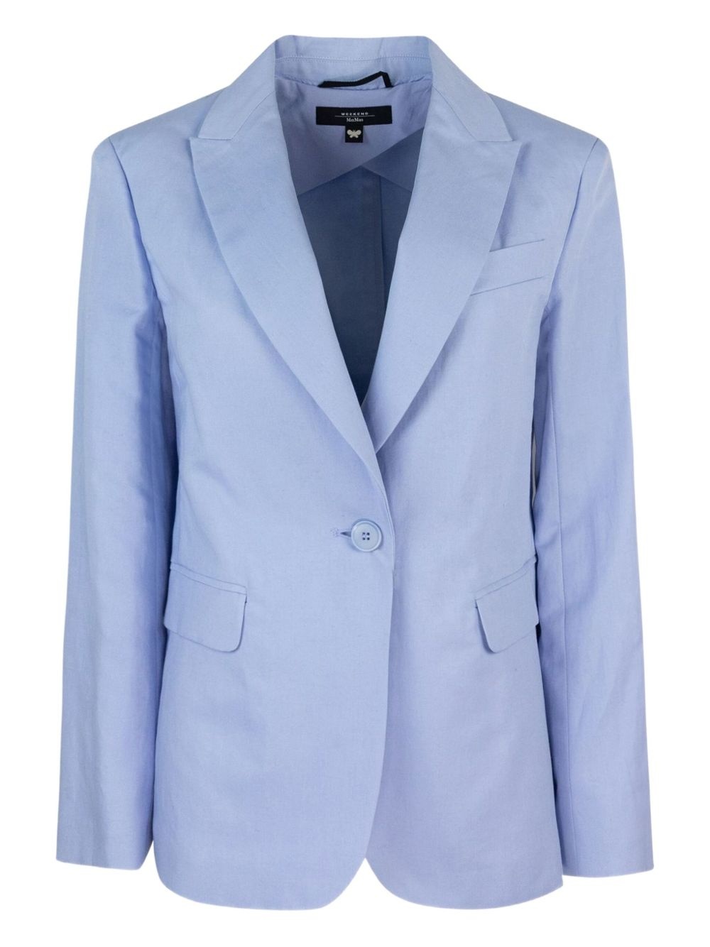 tailored blazer Highlights - Light blue - Notched lapels - Single button closure - Front flap pockets - Back vent - Buttoned cuffs Imported Composition Lining: Cotton 100%, Polyester 100% Outer: Cotton 74%, Linen/Flax 26%