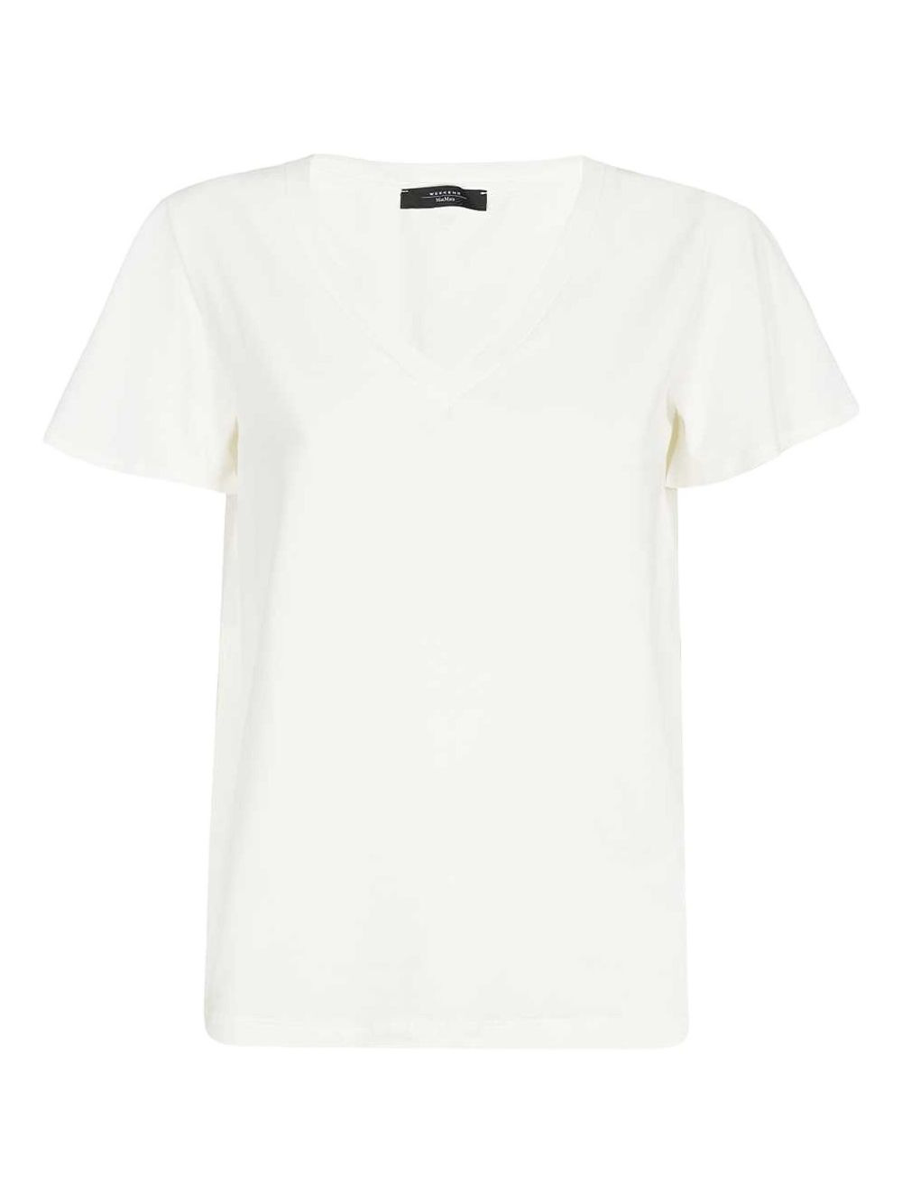 V-neck short-sleeve T-shirt Highlights - White - V-neck - Short sleeves - Cotton-blend Imported Composition Cotton 94%, Elastane 6% Washing instructions Read Manufacturer Guidelines