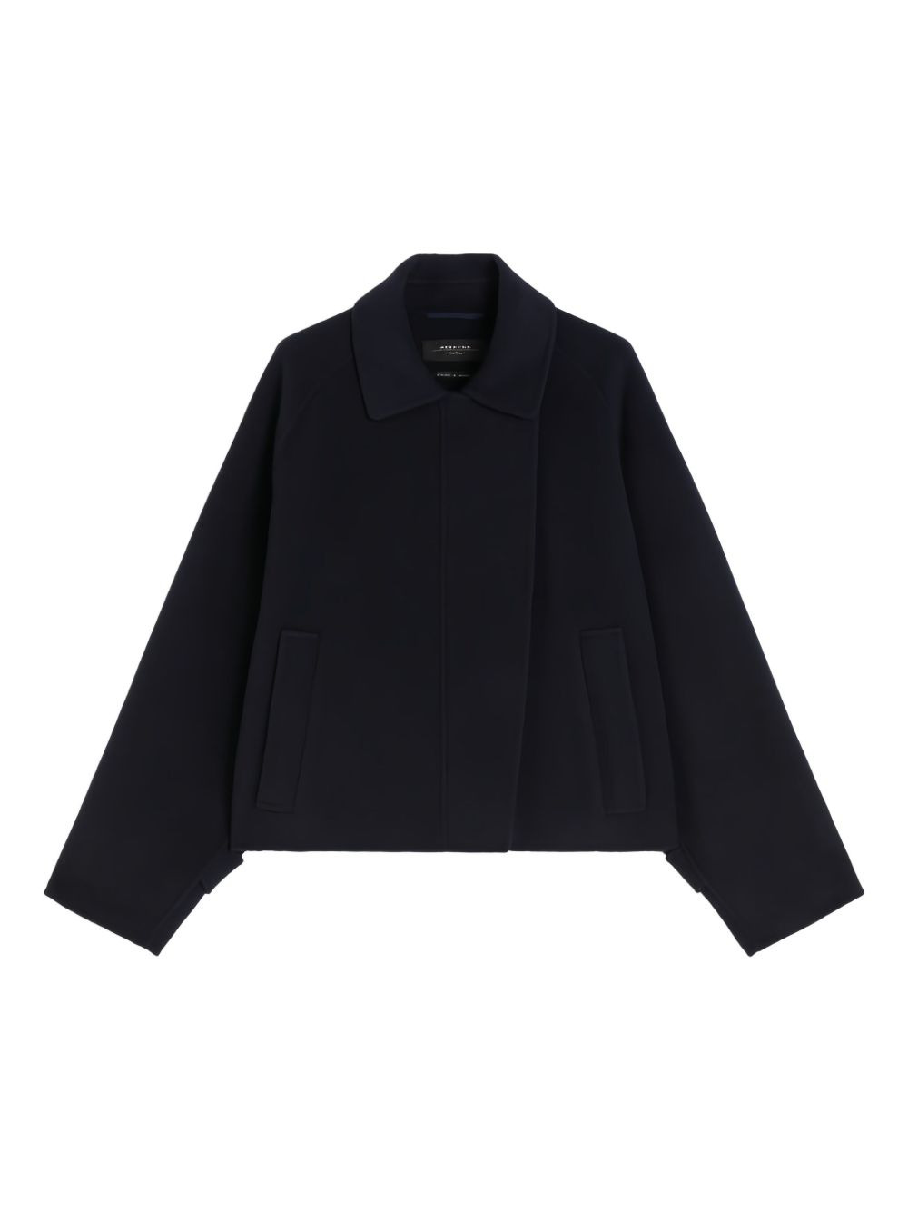 Wool broadcloth cropped coat Highlights - Navy blue - Raglan sleeves - Wide cuffs - Patch pockets - Straight hemline Made in Italy Composition Virgin Wool 100% Washing instructions Read Manufacturer Guidelines