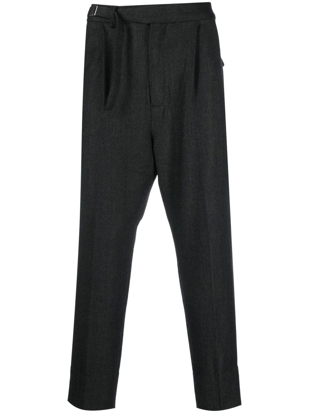 cropped tapered-leg trousers charcoal grey wool blend herringbone pleat detailing tapered leg cropped mid-rise adjustable strap to the side concealed front fastening two diagonal pockets to the sides two rear flap pockets Imported Composition Cotton 100%, Wool 50%, Polyester 25%, Rayon 13%, Nylon 9%, Polyurethane 3% SIZE & FIT Model measurements Height 6 ft 2 in(1.87 m) Bust/Chest 38.18 in(97 cm) Hips 36.61 in(93 cm) Waist 29.13 in(74 cm) FittingInformation This piece fits true to size. We recommend you get your regular size Cut for a slim fit Made with a mid-weight non-stretch fabric