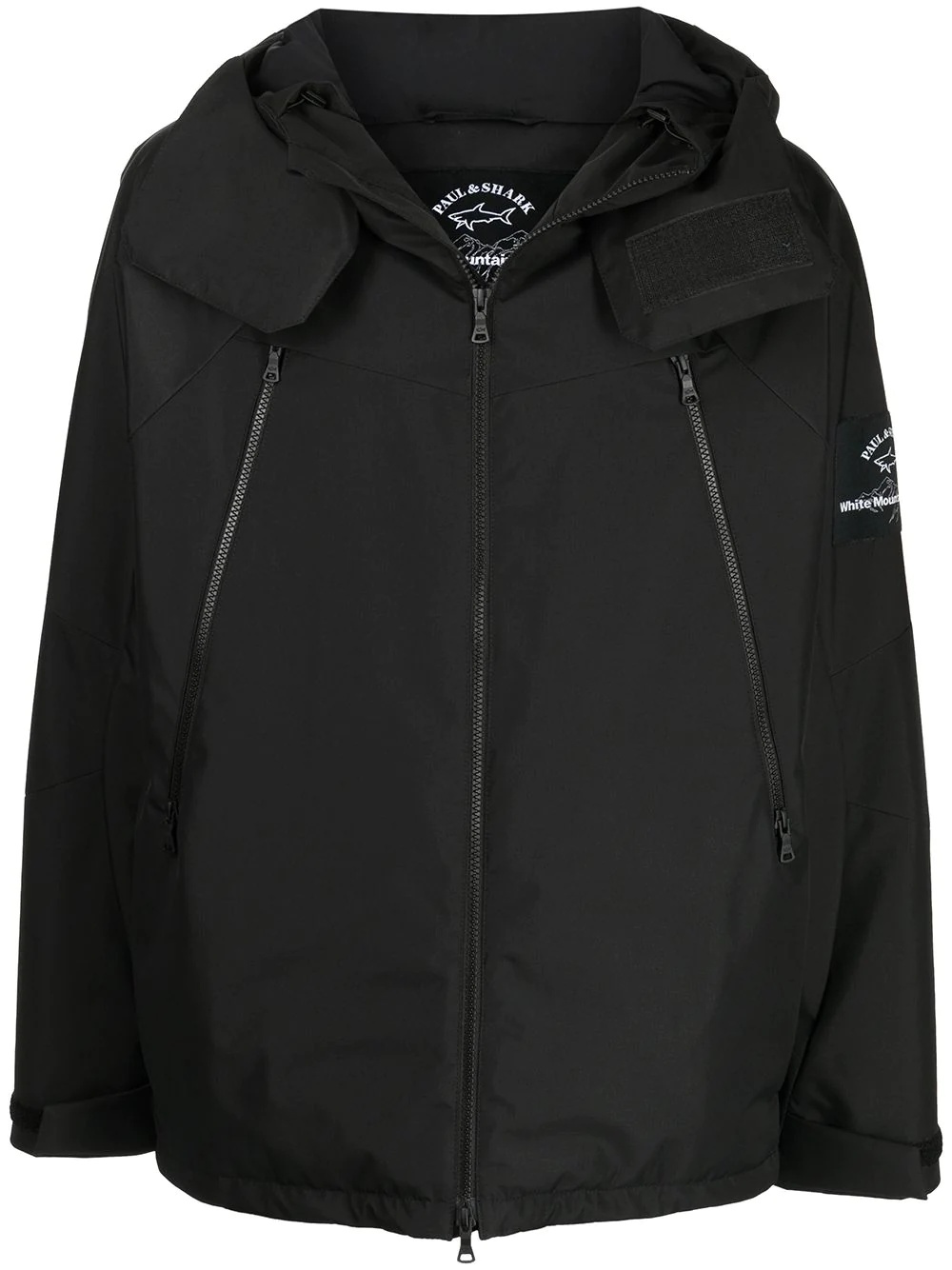 logo-patch hooded jacket black logo patch at the sleeve front zip fastening pockets front zip fastening classic hood long sleeves straight hem Made in Italy Composition Polyester 100% SIZE & FIT Model measurements Height 6 ft 1 in(1.85 m) Bust/Chest 35.03 in(89 cm) Hips 36.22 in(92 cm) Waist 29.52 in(75 cm) FittingInformation This piece fits true to size. We recommend you get your regular size Cut for a loose fit Made with a mid-weight non-stretch fabric Washing instructions Machine Wash