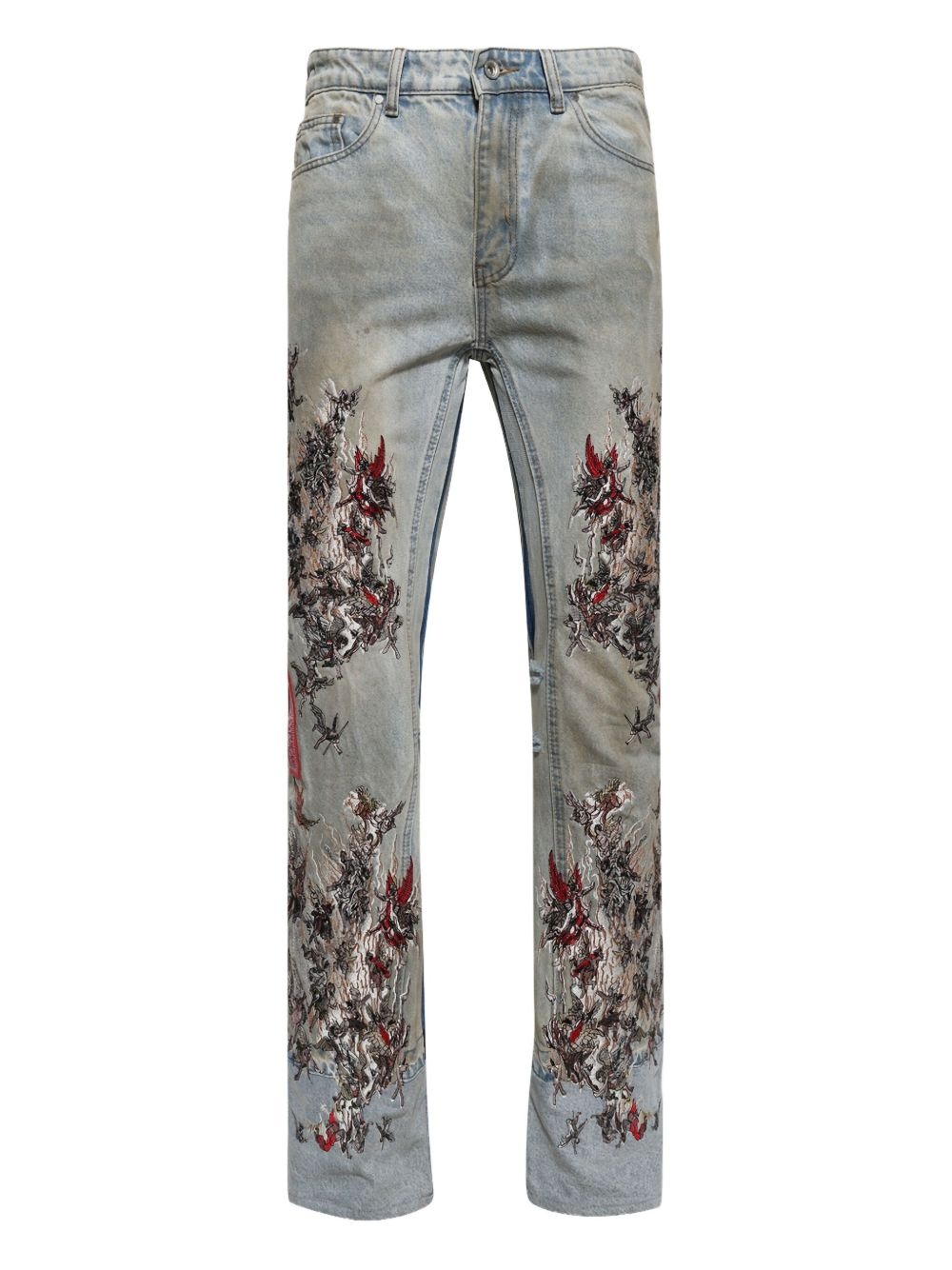 Chaos jeans Highlights - Light blue - All-over embroidery - Contrasting red accents - Five-pocket design - Subtle distressing - Zip fly and button fastening Imported Composition Cotton 100% Washing instructions Read Manufacturer Guidelines