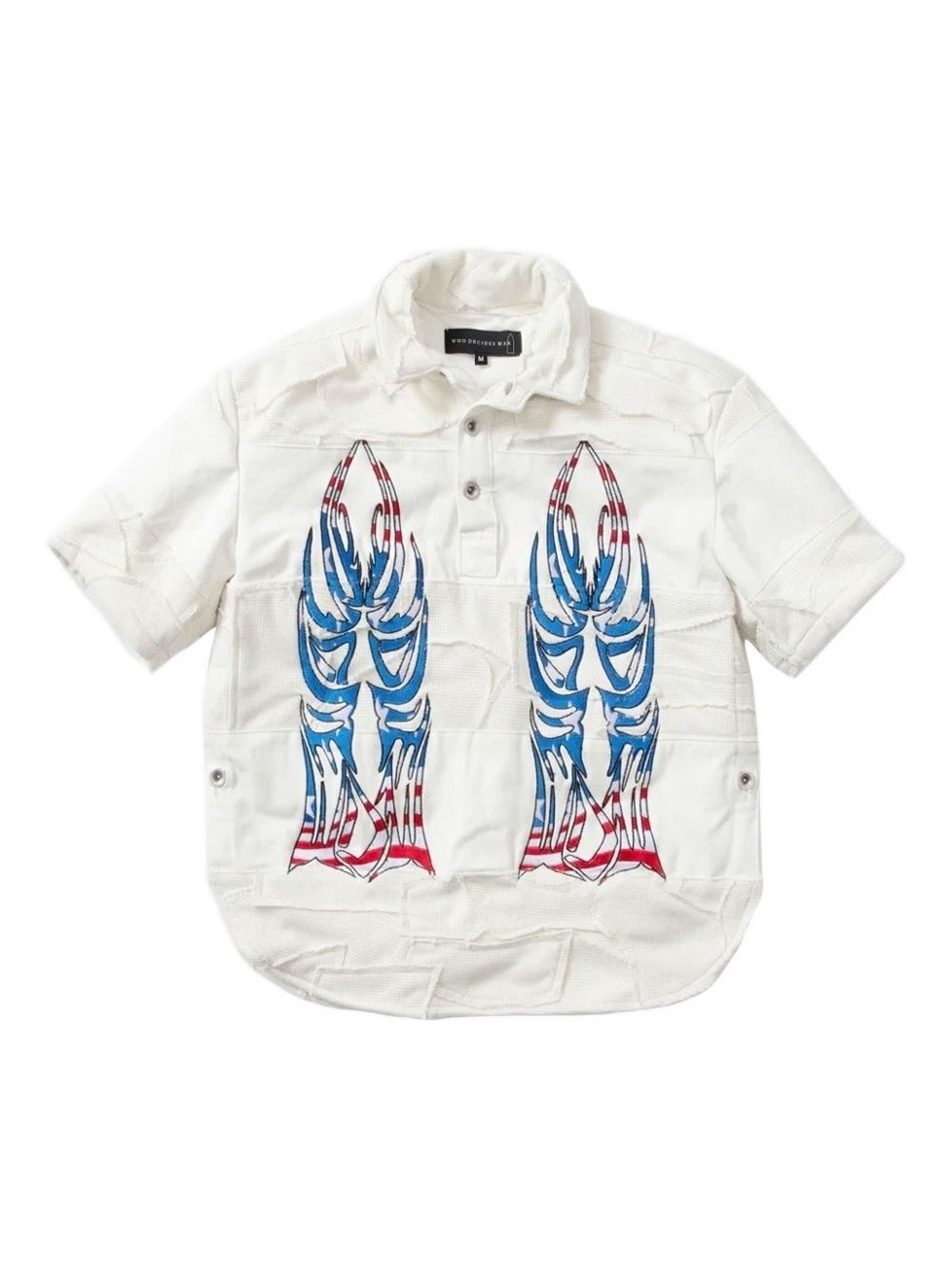 Glory Winged polo shirt Highlights - Off-white - Embroidered design - Button-up front - Spread collar - Side snap fastenings Imported Composition Cotton 100%