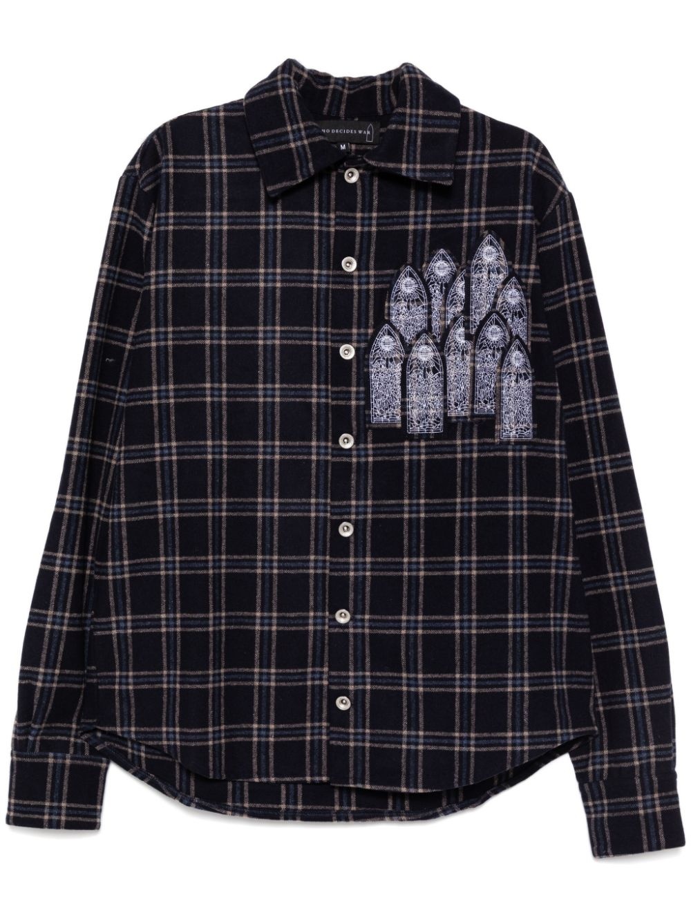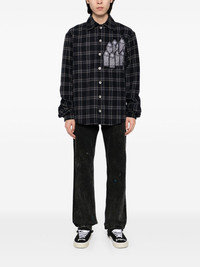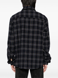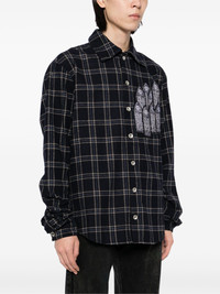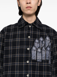 logo patch long-sleeves shirt Highlights - Navy blue - Wool blend - Flannel - Front button fastening - Silver-tone hardware - Classic collar - Plaid check pattern - Logo patch at the chest - Drop shoulder - Long sleeves - Buttoned cuffs - Curved hem Imported Composition Wool 50%, Polyester 50% SIZE & FIT Model measurements Height 6 ft 2 in(1.87 m) Bust/Chest 33.07 in(84 cm) Hips 35.43 in(90 cm) Waist 26.77 in(68 cm) FittingInformation Designed to be unstructured, offering a loose fit throughout Made from a midweight non-stretch fabric