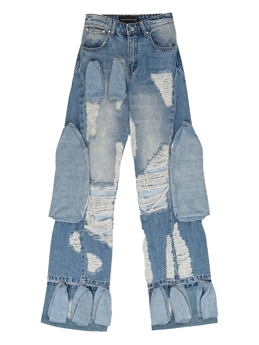 multi-pocket distressed jeans Highlights - Blue - Multi-pocket design - Distressed detailing - Logo patch Imported Composition Cotton 100% Washing instructions Read Manufacturer Guidelines