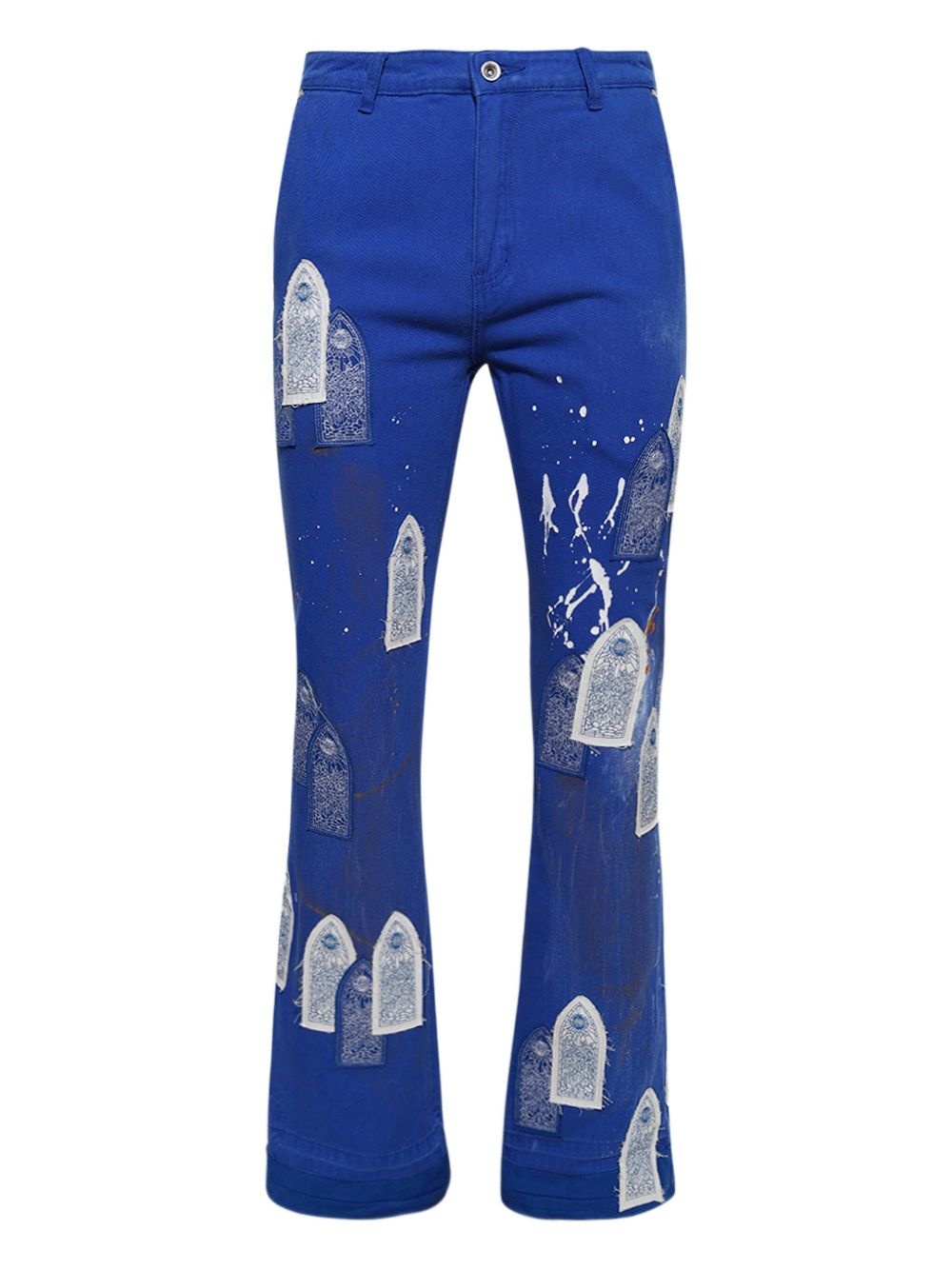Sky Painter jeans Highlights - Blue - Embroidered graphic design - Five pockets - Front button fastening - Flared hem - Tonal stitching Imported Composition Cotton 100% Washing instructions Read Manufacturer Guidelines