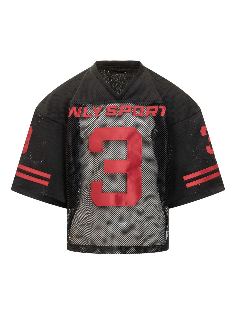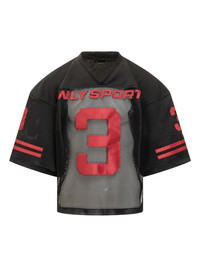 football jersey Highlights - Black - Mesh detail - V-neck - Short sleeves - Striped detail - Logo patch at the rear Made in United States Composition Polyester 100% Washing instructions Read Manufacturer Guidelines