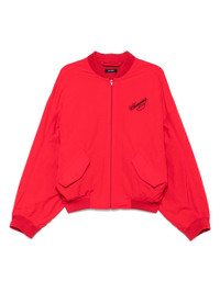 logo-embroidered bomber jacket Highlights - Cardinal red - Front zip fastening - Two side flap pockets - Long raglan sleeves Made in United States Composition Outer: Nylon 100% Lining: Polyester 100% SIZE & FIT Model measurements Height 6 ft 2 in(1.87 m) Bust/Chest 37 in(94 cm) Hips 33.85 in(86 cm) Waist 27.95 in(71 cm) FittingInformation Designed to be unstructured, offering a loose fit throughout The elasticated hem allows for movement and a comfortable fit Made from a midweight non-stretch fabric