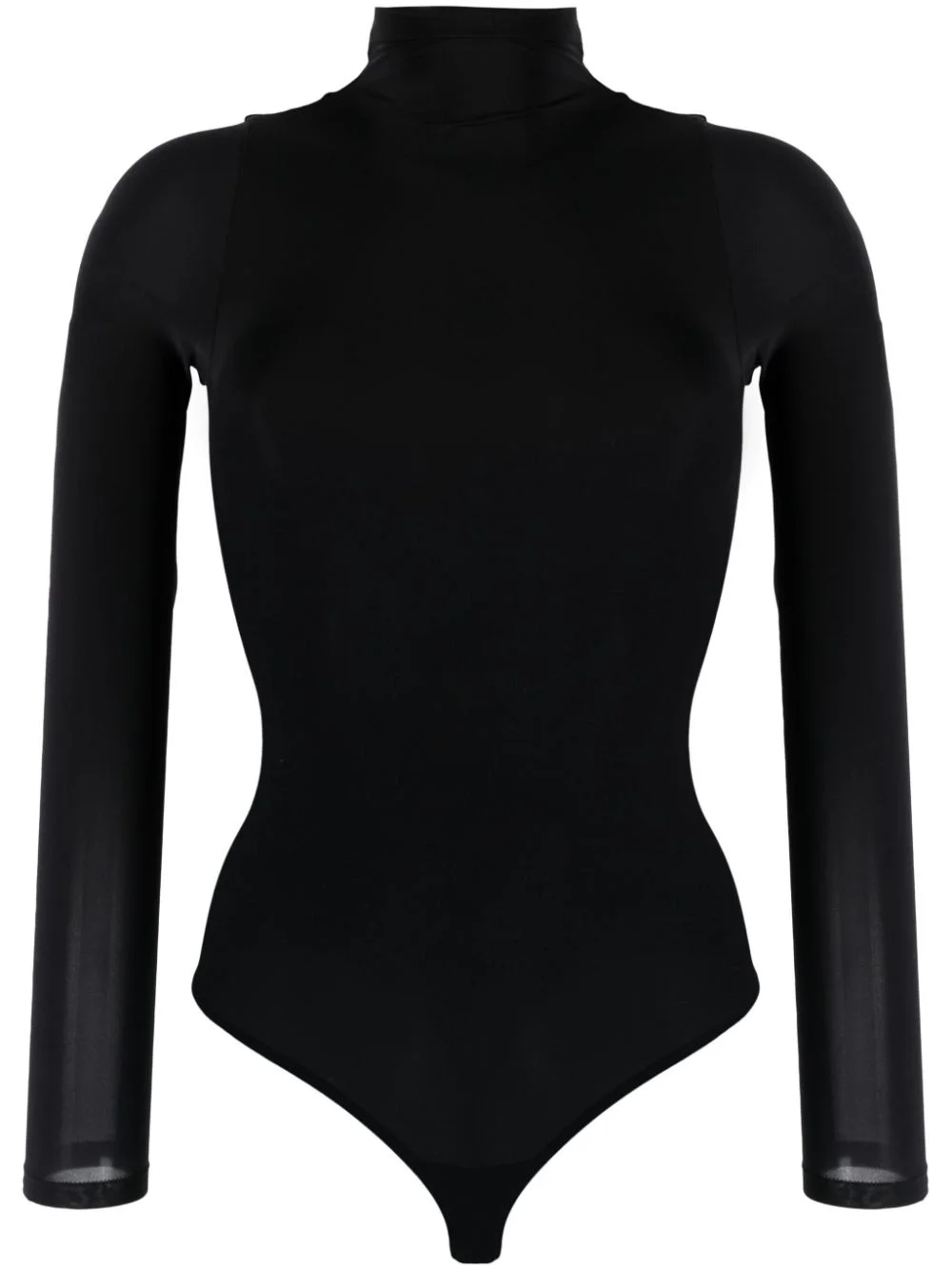 Buenos Aires String semi-sheer bodysuit Highlights - Jet black - Stretch-design - Semi-sheer construction - High neck - Press-stud fastening - Long sleeves - Fitted-cuff sleeves - Just a reminder that this piece must be tried on over your own garments. Imported Composition Polyamide 86%, Spandex/Elastane 14% SIZE & FIT Model measurements Height 5 ft 11 in(1.8 m) Bust/Chest 31.49 in(80 cm) Hips 36.61 in(93 cm) Waist 24.4 in(62 cm) FittingInformation Designed for a close fit throughout Made from a midweight stretch fabric, this piece offers elasticity and flexibility when worn This piece fits true to size – take your usual size Washing instructions Machine Wash