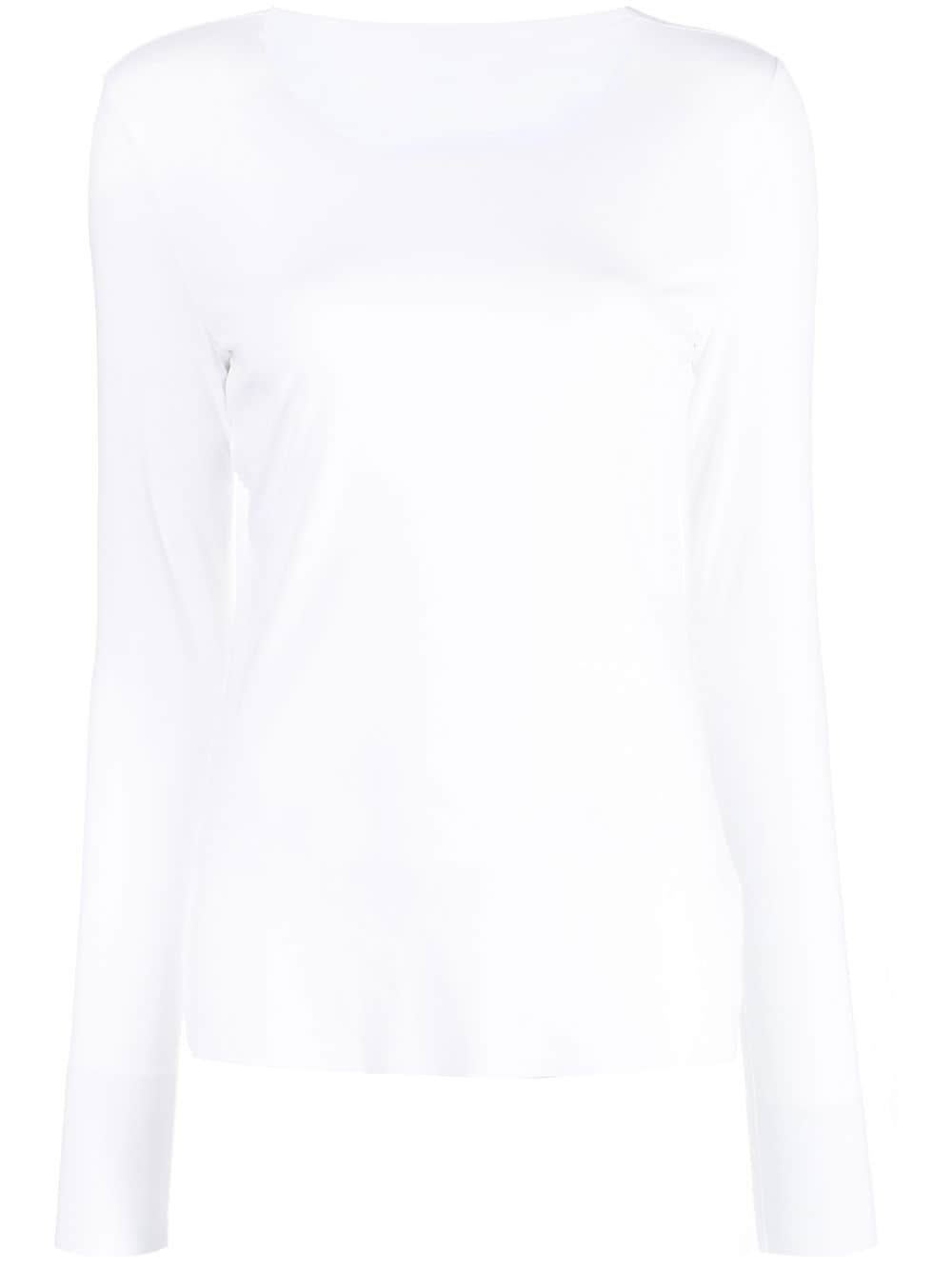 Aurora crew-neck top white modal-blend fine knit crew neck long sleeves straight hem Imported Composition Modal 89%, Elastane 11% SIZE & FIT Model measurements Height 5 ft 10 in(1.79 m) Bust/Chest 31.49 in(80 cm) Hips 35.03 in(89 cm) Waist 24.01 in(61 cm) FittingInformation This piece fits true to size. We recommend you get your regular size Cut for a slim fit Made with a lightweight stretch fabric Washing instructions Machine Wash