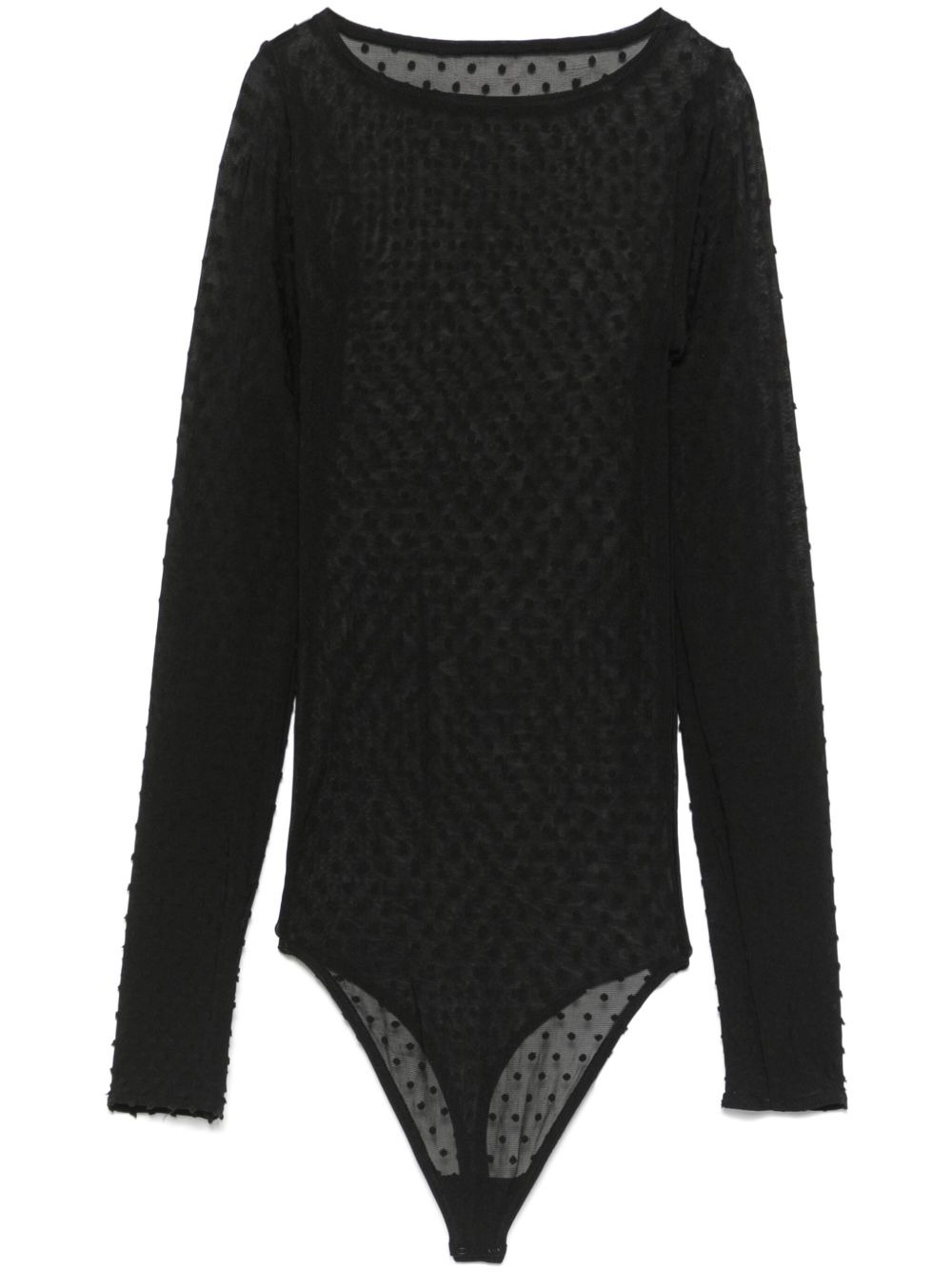 dots string body Highlights - Black - Snap-fit fastening - Boat neck - Long sleeves Imported Composition Polyamide 80%, Polyester 13%, Elastane 7% SIZE & FIT Model measurements Height 5 ft 11 in(1.8 m) Bust/Chest 33.07 in(84 cm) Hips 37.4 in(95 cm) Waist 25.19 in(64 cm) FittingInformation Designed for a close fit throughout Made from a lightweight stretch fabric, this piece offers elasticity and flexibility when worn