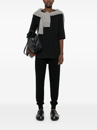elasticated-waistband knitted trousers Highlights - Black - Knitted construction - Elasticated waistband with internal drawstring - Ribbed cuffs - Pull-on style Made in Italy Composition Fabric 100% SIZE & FIT Model measurements Height 5 ft 11 in(1.8 m) Bust/Chest 32.67 in(83 cm) Hips 36.22 in(92 cm) Waist 24.4 in(62 cm) FittingInformation Designed for a relaxed tapered cut, these trousers allow for a close fit at the waist and offer a loose fit at the thighs, with a closer fit toward the ankles Adjust this piece’s waistband to your preference using the drawstring Made with a midweight knit, this piece offers some stretch This piece fits true to size – take your usual size