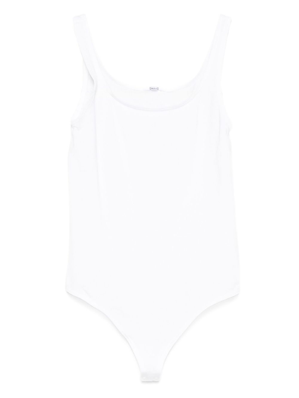 jersey body Highlights - White - Scoop neck - Sleeveless - Thong back Imported Composition Cotton 48%, Polyamide 46%, Elastane 6% SIZE & FIT Model measurements Height 5 ft 10 in(1.78 m) Bust/Chest 33.85 in(86 cm) Hips 36.61 in(93 cm) Waist 26.77 in(68 cm) Washing instructions Machine Wash