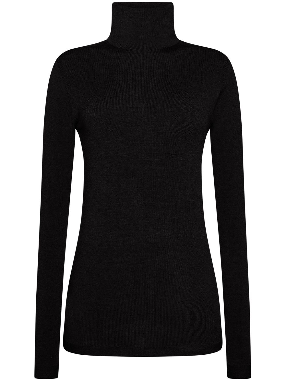 long-sleeve knit top Highlights - Black - High neck - Long sleeves Made in Italy Composition Virgin Wool 88%, Polyester 12% Washing instructions Read Manufacturer Guidelines