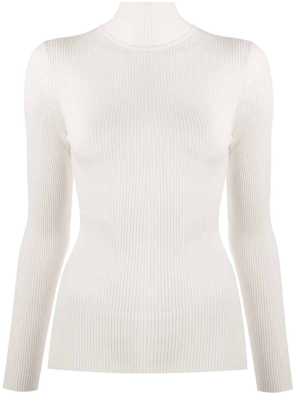 roll-neck fitted jumper Highlights - White - Virgin wool - Fine knit - Roll neck - Long sleeves Imported Composition Virgin Wool 100% SIZE & FIT Model measurements Height 5 ft 10 in(1.77 m) Bust/Chest 33.46 in(85 cm) Hips 35.43 in(90 cm) Waist 26.77 in(68 cm) FittingInformation This piece fits true to size. We recommend you get your regular size Cut for a slim fit Made with a mid-weight fabric