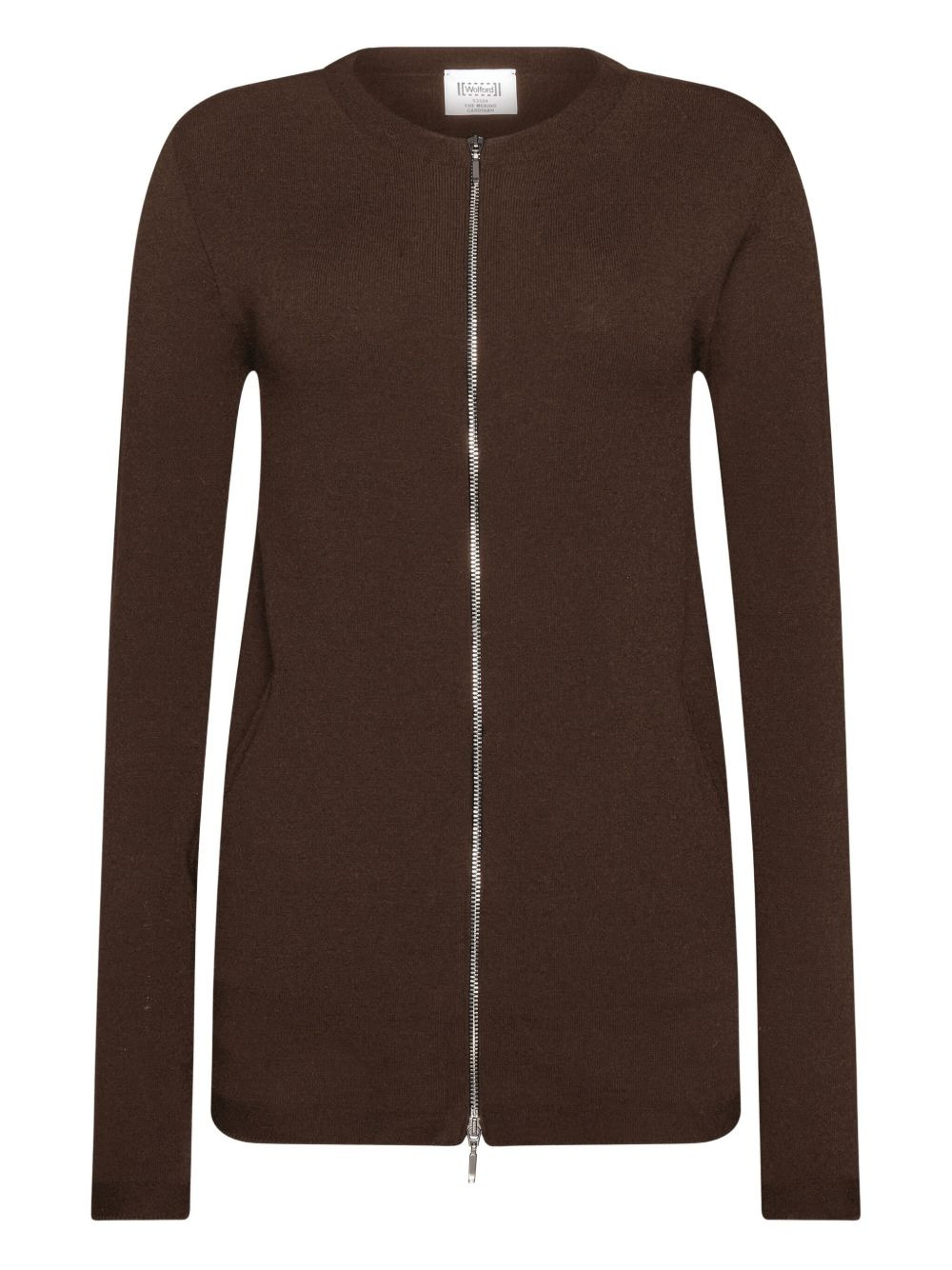 zip-front wool cardigan Highlights - Brown - Long sleeves - Zip fastening - Crew neck - Patch pockets Made in Italy Composition Virgin Wool 100%, Polyester 100% Washing instructions Read Manufacturer Guidelines