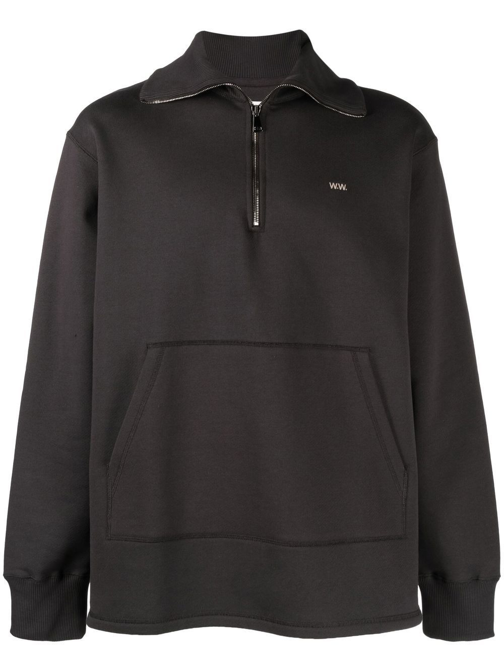 long-sleeve cotton sweatshirt brown cotton embroidered logo at the chest half front zip fastening front pouch pocket long sleeves ribbed cuffs straight hem Imported Composition Cotton 100% SIZE & FIT Model measurements Height 6 ft 0 in(1.84 m) Bust/Chest 36.22 in(92 cm) Hips 35.43 in(90 cm) Waist 26.77 in(68 cm) FittingInformation This piece fits true to size. We recommend you get your regular size Cut for a loose fit Made with a mid-weight fabric