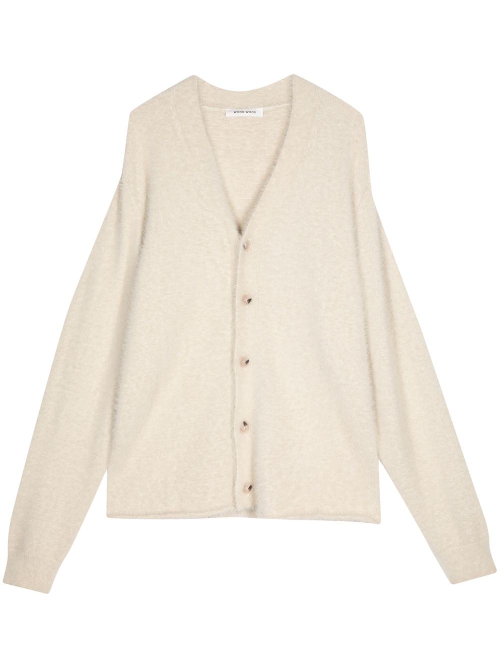 V-neck knit cardigan Highlights - Light beige - V-neck - Front button fastening - Long sleeves - Straight hem Imported Composition Polyamide 100%