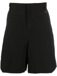 cotton-hemp blend bermuda shorts Highlights - Jet black - Cotton-hemp blend - Mid-rise - Pleat detailing - Embroidered logo to the rear - Belt loops - Hook and zip fly fastening - Two side inset pockets Imported Composition Outer: Linen/Flax 20% SIZE & FIT Model measurements Height 6 ft 2 in(1.87 m) Bust/Chest 38.18 in(97 cm) Hips 36.61 in(93 cm) Waist 29.13 in(74 cm) FittingInformation Designed with a wide leg, offering a loose and roomy fit Made from a midweight non-stretch fabric This piece fits true to size – take your usual size
