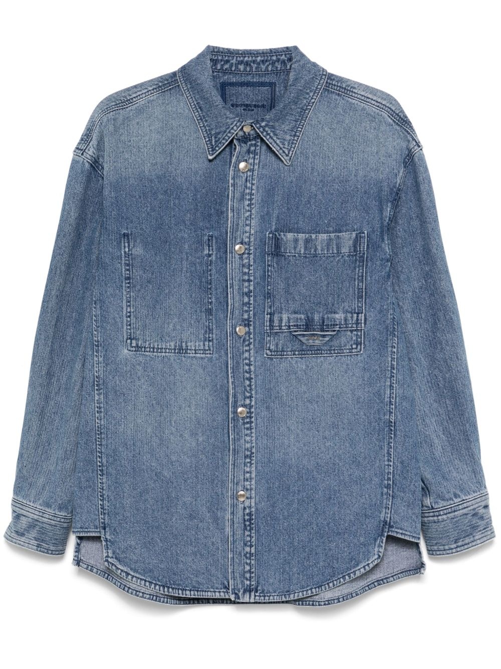 denim shirt Highlights - Imperial blue - Front button fastening - Chest patch pocket - Box-pleat detail - Logo print to the rear Imported Composition Cotton 100% Washing instructions Hand Wash