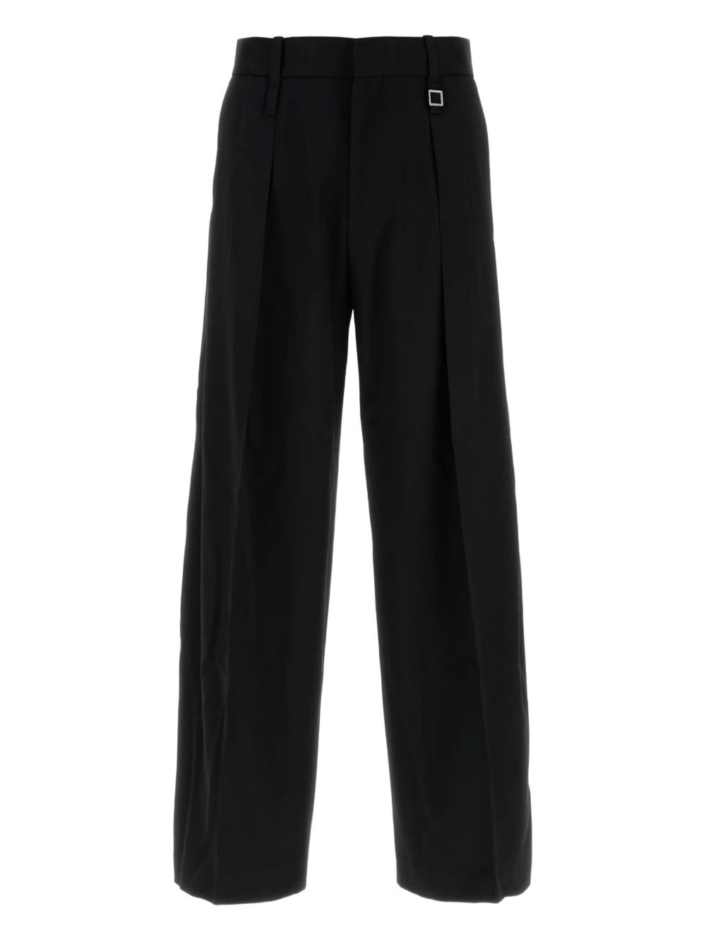 pleated wide-leg trousers Highlights - Black - Pleated front - Concealed front fastening - Wide leg - High waist Imported Composition Wool 80%, Polyester 20% Washing instructions Read Manufacturer Guidelines