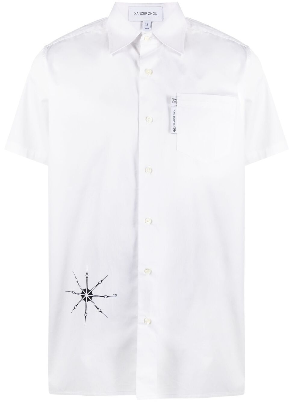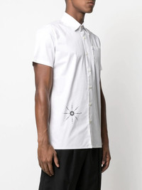 chest-pocket shirt white cotton chest patch pocket classic collar front button fastening short sleeves straight hem Imported Composition Cotton 100% SIZE & FIT Model measurements Height 5 ft 9 in(1.74 m) Bust/Chest 32.28 in(82 cm) Hips 35.82 in(91 cm) Waist 24.01 in(61 cm) FittingInformation This piece is unisex. Please take care when selecting your size Designed for a loose fit for men and an oversized fit for women Made with a mid-weight non-stretch fabric Washing instructions Hand Wash