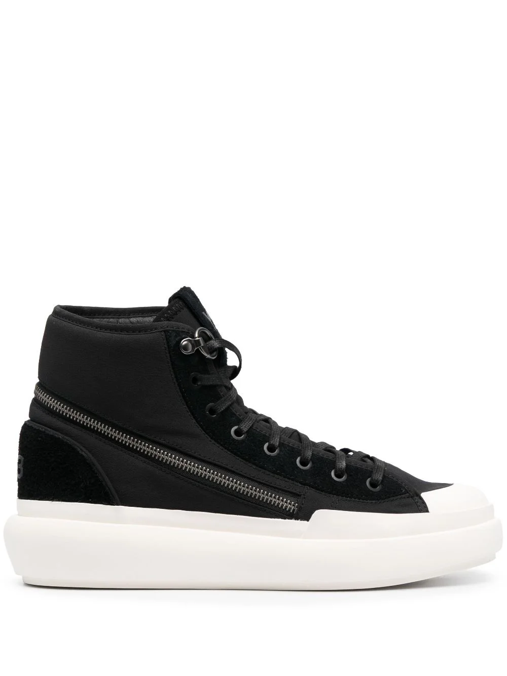 Ajatu Court high-top sneakers Taking inspiration from adidas' Nizza basketball shoes, Y-3 blends modernity and tradition into this pair of sneakers. Keeping the signature high-top silhouette, this pair is accented with zip detailing that adds a modern flair to the piece. Highlights - Black - All-around zip fastening - Front lace-up fastening - Logo-print tongue - Round toe - Branded heel counter - Oversize rubber sole - Flat sole Imported Composition Outer: Calf Leather 100%, Fabric 100% Body: Sole: Rubber 100% Lining: Fabric 100%
