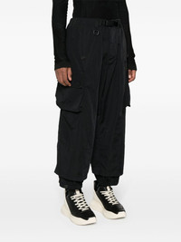 cargo trousers Highlights - Black - Twill weave - Belt loops - Keyhole detail - Two side slit pockets - Decorative button detailing - Two side cargo pockets - Wide leg - Full-length - Layered elasticated hem - Adjustable press-stud fastening to the hem - Two rear welt pockets - Elasticated waistband - Concealed front zip fastening - Front press-stud fastening - Belted waist Imported Composition Recycled Polyester 100% SIZE & FIT Model measurements Height 6 ft 2 in(1.87 m) Bust/Chest 36.22 in(92 cm) Hips 37 in(94 cm) Waist 27.95 in(71 cm) Washing instructions Machine Wash