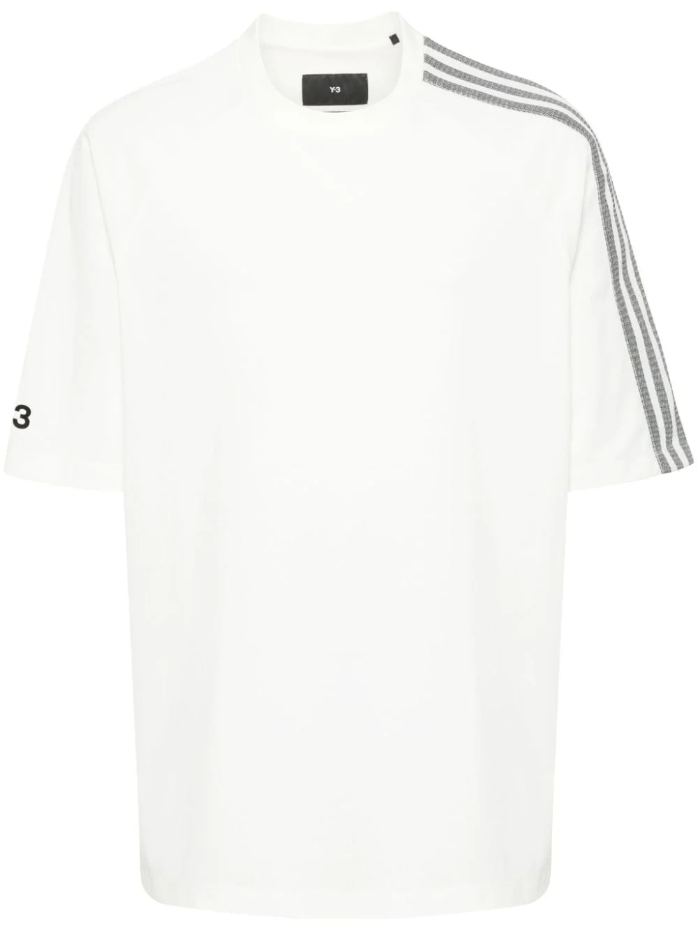 Closure jersey T-shirt Highlights - White - Cotton-recycled polyester blend - Jersey texture - Signature 3-stripes logo - Crew neck - Short raglan sleeves - Short side slits - Straight hem Imported Composition Cotton 55%, Recycled Polyester 45% SIZE & FIT Model measurements Height 5 ft 10 in(1.78 m) Bust/Chest 33.07 in(84 cm) Hips 36.61 in(93 cm) Waist 24.8 in(63 cm) Washing instructions Machine Wash