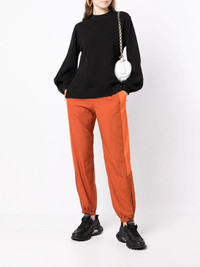 contrasting-panel tracksuit bottom orange contrasting panel detail two side inset pockets elasticated waistband tapered leg elasticated ankles Imported Composition Polyamide 100% SIZE & FIT Model measurements Height 5 ft 11 in(1.8 m) Bust/Chest 28.34 in(72 cm) Hips 35.43 in(90 cm) Waist 23.62 in(60 cm) FittingInformation This piece fits true to size. We recommend you get your regular size Designed to be loose over the leg with a fitted waist and hem Made with a mid-weight stretch fabric Washing instructions Machine Wash