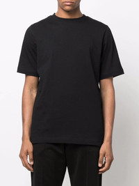 cotton art-print T-shirt black cotton graphic print to the rear round neck short sleeves straight hem Imported Composition Cotton 100% SIZE & FIT Model measurements Height 6 ft 1 in(1.85 m) Bust/Chest 33.46 in(85 cm) Hips 38.18 in(97 cm) Waist 31.49 in(80 cm) FittingInformation This piece fits true to size. We recommend you get your regular size Cut for a loose fit Made with a mid-weight fabric Washing instructions Machine Wash