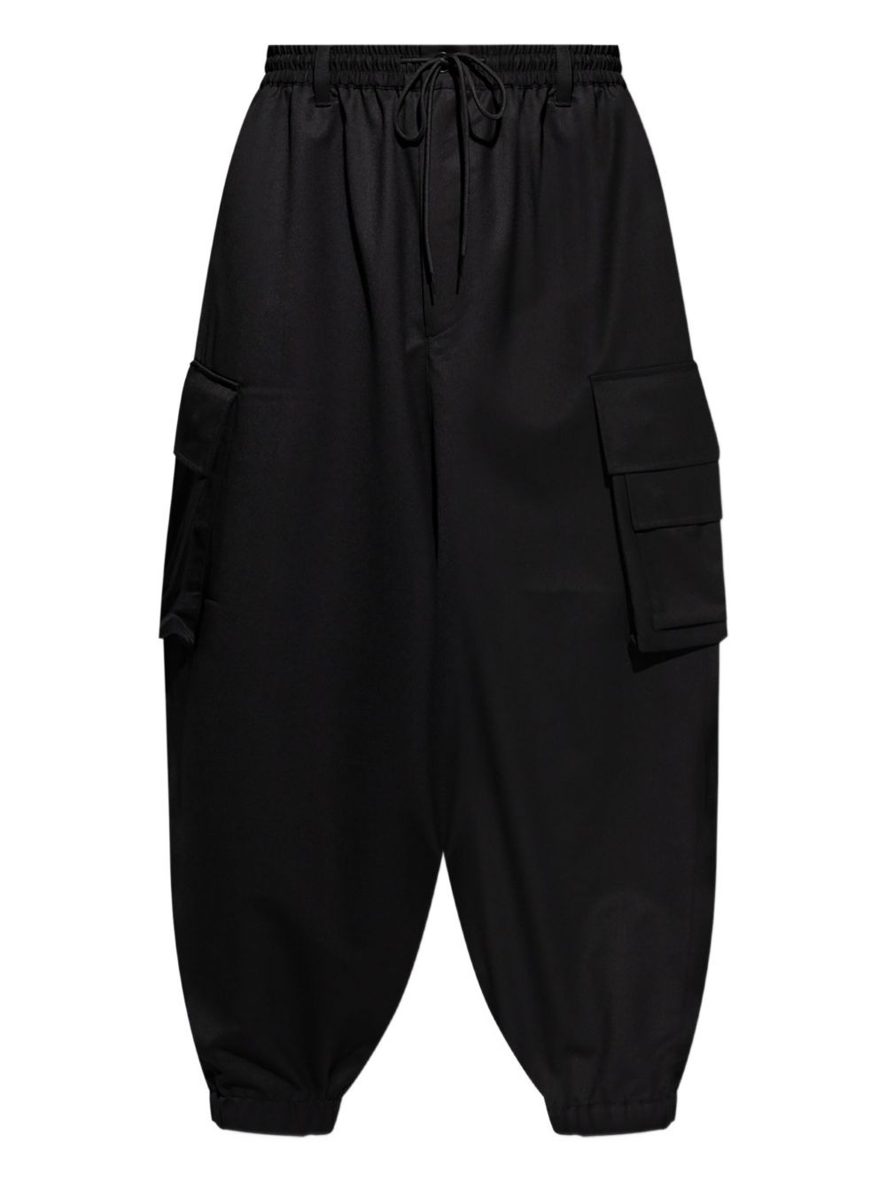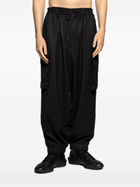 drawstring cargo trousers Highlights - Black - Drawstring fastening - Side cargo pockets - Elasticated cuffs Imported Composition Recycled Polyester 65%, Wool 30%, Elastane 5% Washing instructions Read Manufacturer Guidelines