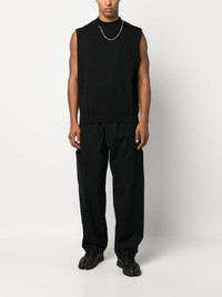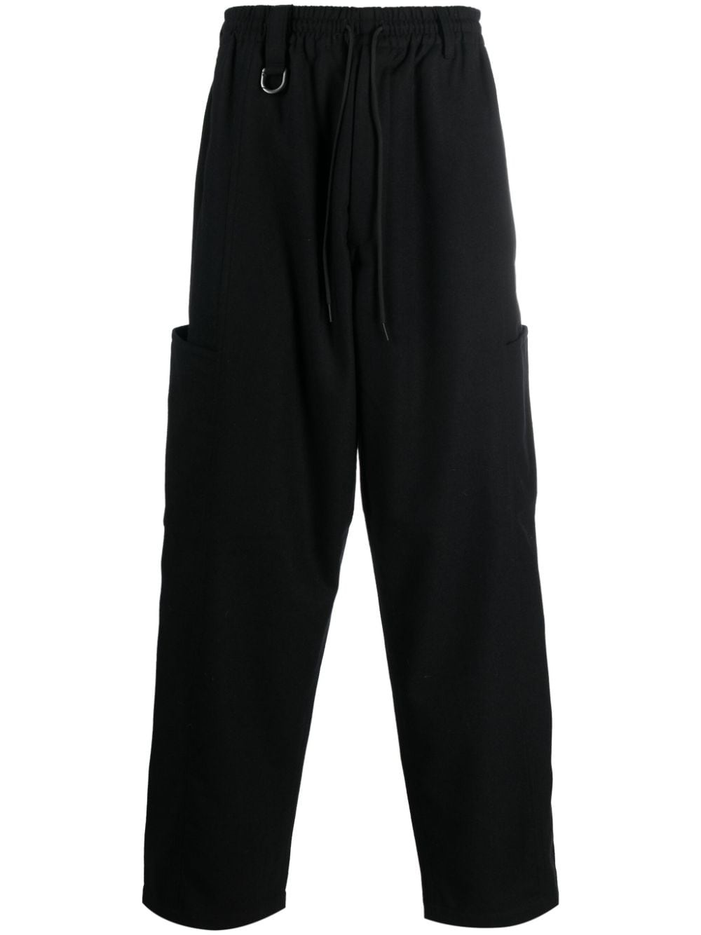 drawstring cotton track pants Highlights - Black - Cotton - Recycled polyester - Elasticated drawstring waistband - Two rear welt pockets - Belt loops - Slip pockets to the sides - Straight leg Imported Composition Outer: Recycled Polyester 56%, Wool 41%, Polyamide 2%, Viscose 1% Lining: Cotton 100%, Recycled Polyester 100% SIZE & FIT Model measurements Height 6 ft 2 in(1.88 m) Bust/Chest 36.61 in(93 cm) Hips 37.79 in(96 cm) Waist 28.74 in(73 cm) FittingInformation Designed for a relaxed tapered leg, allowing a comfortable loose fit above the knee with a closer fit towards the calves The elasticated waist allows for a comfortable fit Made from a midweight non-stretch fabric, this piece offers minimal elasticity when worn This piece fits true to size – take your usual size Washing instructions Dry Clean Only