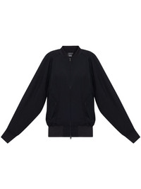 drop-shoulder bomber jacket Highlights - Black - Front two-way zip fastening - Two front flap pockets - Baseball collar - Ribbed cuffs and hem Imported Composition Viscose 100% Washing instructions Read Manufacturer Guidelines