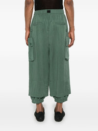 faded twil trousers Highlights - Racing green - Buckle fastening - Elasticated waistband - Two side slit pockets - Two side cargo pockets Imported Composition Lyocell 93%, Polyamide 7% SIZE & FIT Model measurements Height 6 ft 2 in(1.87 m) Bust/Chest 36.22 in(92 cm) Hips 37 in(94 cm) Waist 27.95 in(71 cm) FittingInformation Designed for a tapered leg, offering a loose unrestricted fit over the leg with a closer fit towards the ankle Adjust this piece’s waistband to your preference using the drawstring Made from a midweight non-stretch fabric, this piece offers minimal elasticity when worn